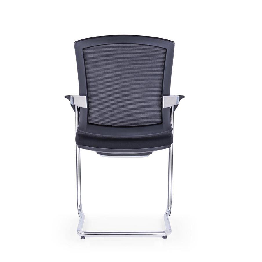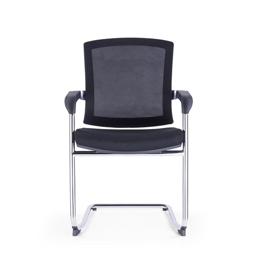 The Black Visitor Chair in the Cloud series showcases a modern aesthetic, characterized by its nylon glass fiber frame. The leg and armrest seamlessly link to the back, complemented by PP top armrests, a plush 45 high-density foam seat, and a chrome leg with a robust 1.8mm thickness.