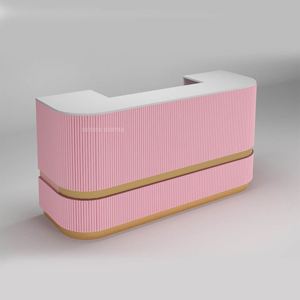 Elevate the style and functionality of your reception area with our pink reception desk. Made from durable materials and designed with a modern aesthetic, this desk will make a bold statement while providing a welcoming and efficient space for your guests
